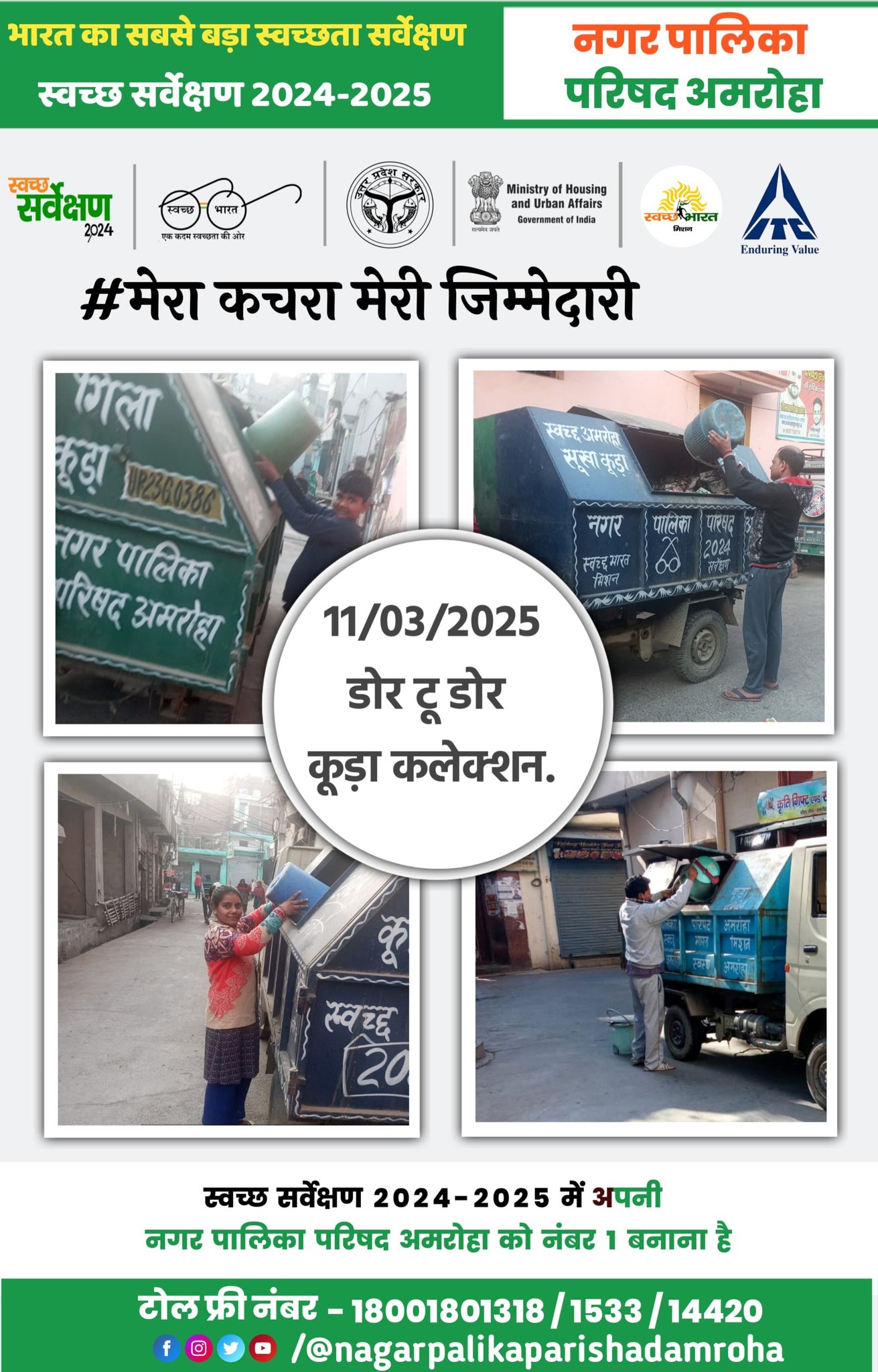 | 74 | 11/03/2025 | दिनांक 11.03.2024 डोर टू डोर कूड़ा कलेक्शन....नगर पालिका परिषद अमरोहा | |