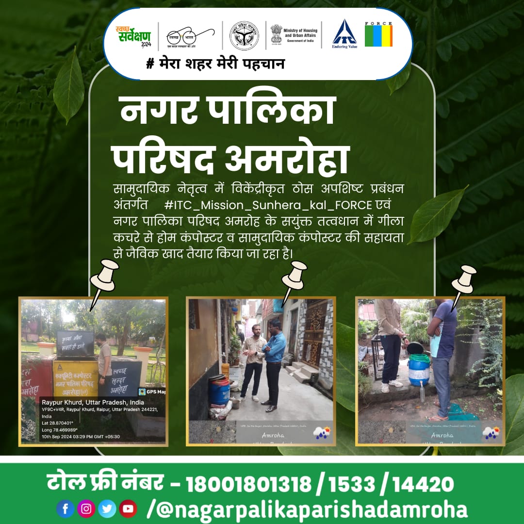 | 40 | 24/07/2025 | स्वच्छ सर्वेक्षण2024 में ITCमिशन सुनहरा कल टीम द्वारा महोल्ला समिति के गठन कर कूड़ा पृथक्करण,होम कंपोस्टिंग, सामुदायिक कंपोस्टिंग, स्कूल,कॉलेजो में रैली, नुक्कड़ नाटकों ड़ोर टू डोर जाकर जन जागरूकता अभियान के माध्यम से लोगो को जागरूक किये जाने पर नगर पालिका परिषद अमरोहा आईटीसी मॉडल सामुदायिक नेतृत्व में विकेंद्रीकृत ठोस अपशिष्ट प्रबंधन कार्यक्रम की सरहना करती है और भविष्य में ऐसे ही अनेकों प्रयासों की कामना करती है। | |