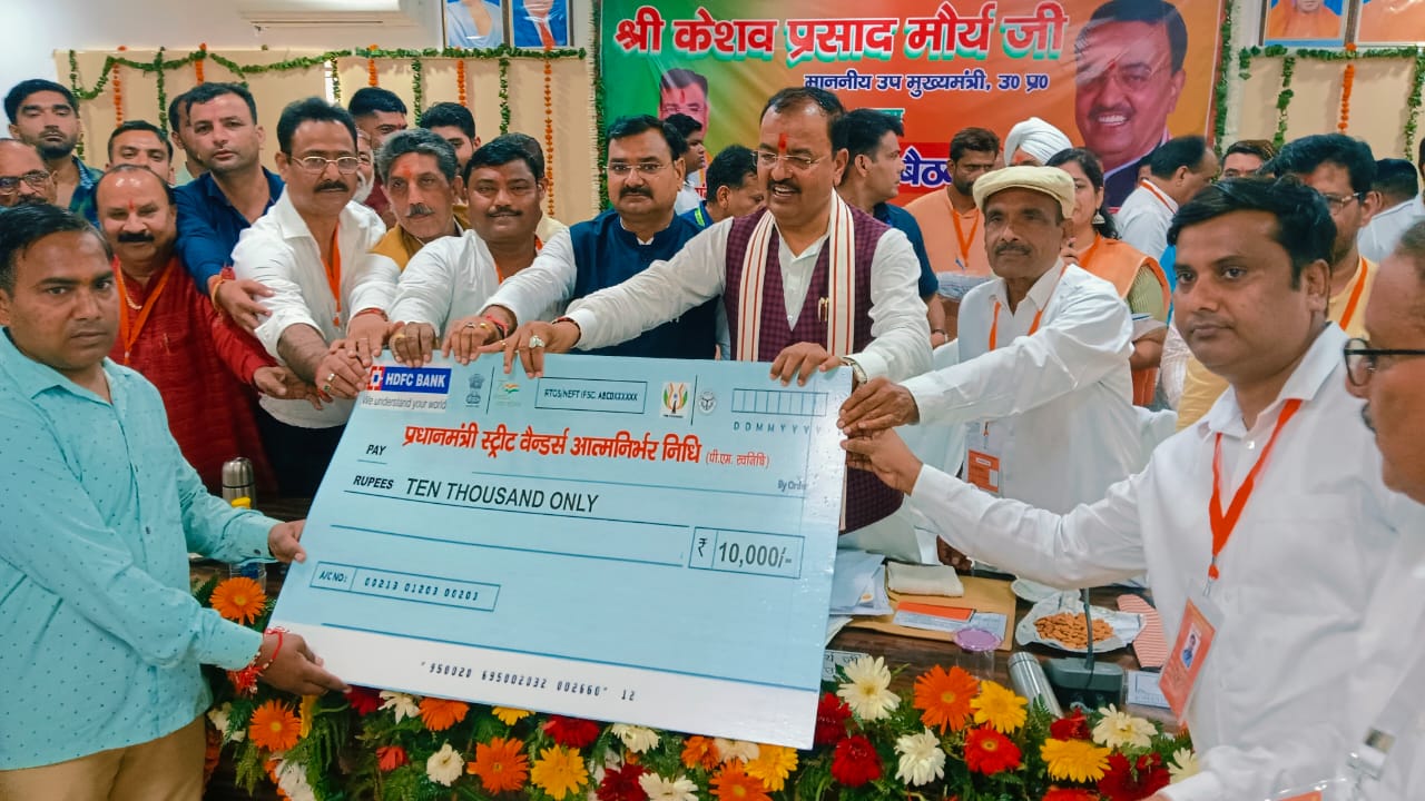 86324/09/2023पीएम स्वनिधि योजना के लाभार्थियों को चैक देकर सम्मानित करते माननीय उप मुख्य मंत्री केशव प्रसाद मौर्य जी, उत्तर प्रदेश, अधिशासी अधिकारी महोदय, भाजपा के पदाधिकारीगण एवं अधिकारीगण #nppamroha