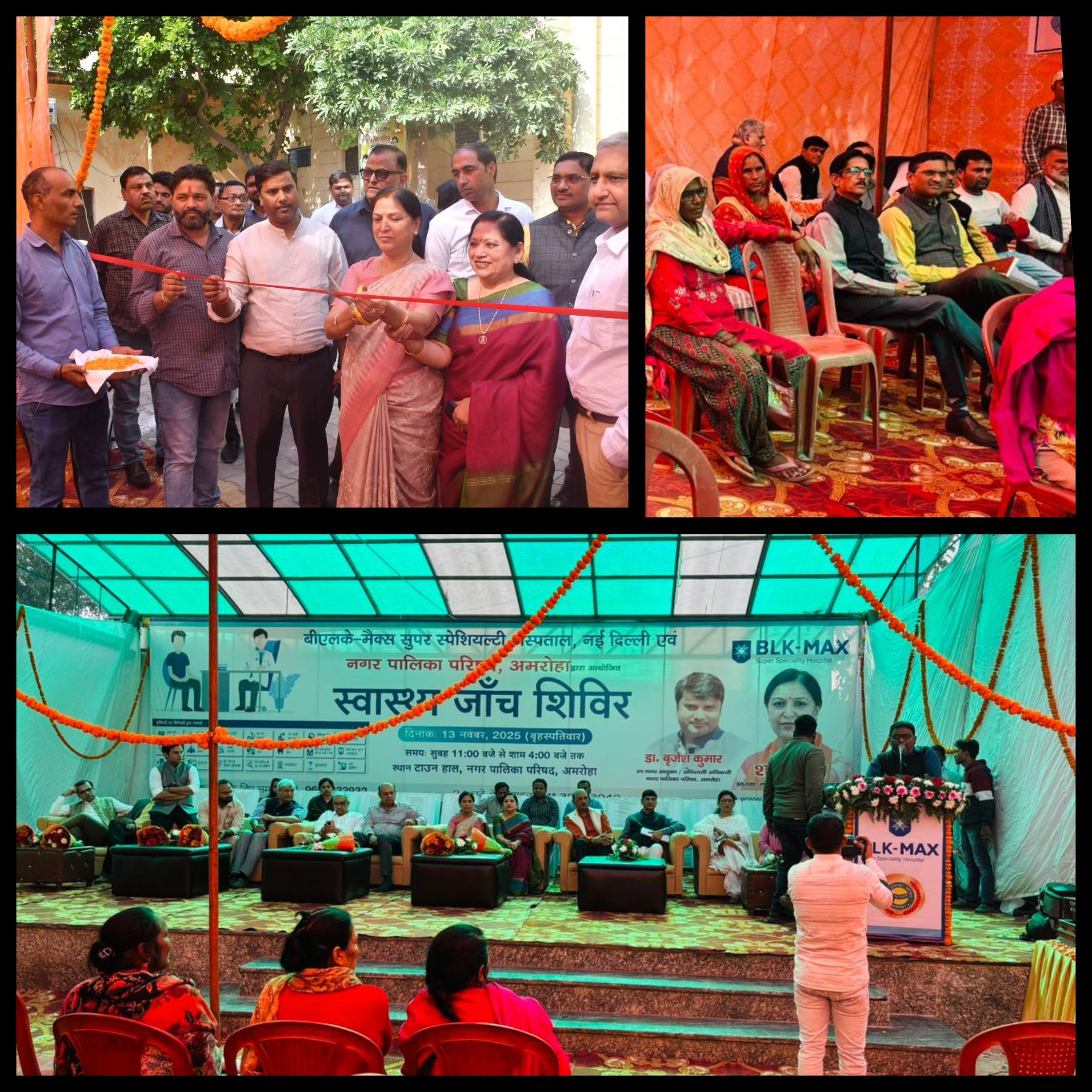 | 4 | 14/11/2025 | *Media Coverage* नगर पालिका परिषद अमरोहा के टाउन हॉल मे नगर पालिका अमरोहा एवं बी. एल. के. मैक्स हॉस्पिटल दिल्ली के संयुक्त तत्वाधान मे आयोजित स्वास्थ्य शिविर का उद्घाटन नगर पालिका परिषद अमरोहा की मा. अध्यक्ष श्रीमती शशि जैन जी द्वारा किया गया.। कैम्प मे बी. एल. के. मैक्स दिल्ली से आये प्रसिद्ध डॉक्टरो द्वारा बड़ी संख्या मे पालिका मे आये नागरिकों का स्वास्थ्य परीक्षण कर उन्हें स्वास्थ्य परामर्श दिया गया। इस अवसर पर पालिका उप नगर आयुक्त डॉ. बृजेश कुमार, समस्त पालिका सभासद व आमजन बड़ी संख्या मे उपस्थित रहे। कैम्प मे 600 आमजन एवं पालिका कार्मिको द्वारा स्वस्थ परीक्षण एवं परामर्श प्राप्त किया गया। | |