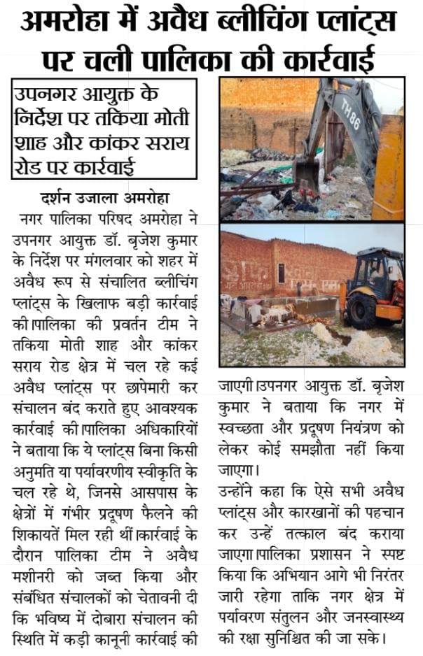 1712/11/2025डॉ बृजेश कुमार उप नगरआयुक्त/अधिशासी अधिकारी महोदय के आदेशों के अनुपालन मे आज नगर के तकिया मोती शाह, कांकर सराय रोड पर अवैध रूप से संचालित ब्लीचिंग प्लांट्स/ होदडियो पर पालिका द्वारा कार्यवाही की गयी.